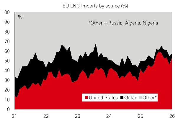 Europe’s LNG mix has also shifted, with most imports now coming from the US. And the EU has made storage targets more flexible versus 2022, especially under unfavourable conditions such as now, reducing the risk of a panicked buyer stampede and a further spike in prices.