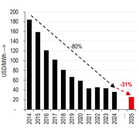 Global Levelized cost of solar energy is expected to fall 31% by 2035