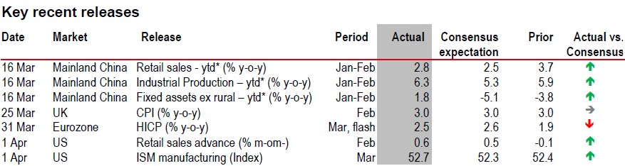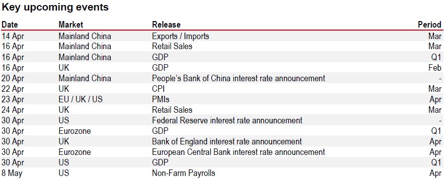 The price moves have been sharp, but the economic impact may take a few months to be fully seen. Hard economic data for March are limited, but available surveys – including PMIs and national business and consumer surveys – reflect slowing activity and widespread pricing concerns across the world.